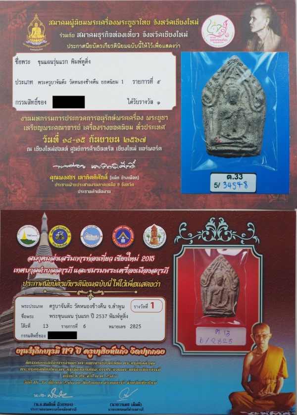 ขุนแผนรุ่นแรก ครูบาจันต๊ะ อนาวิโล วัดหนองช้างคืน พิมพ์หูติ่ง เนื้อดำ สวยแชมป์ ตามบันทึกสร้างเพียง 49 องค์เท่านั้น องค์นี้พิเศษจาร นะ หายากสุดๆๆ พระสวยสมบูรณ์เดิมๆสุดๆ มี รอยจาร ตราปั๊ม ชัดเจน..สภาพแบบนี้หายากขึ้นทุกวัน ครูบาจันต๊ะ อนาวิโล วัดหนองช้างคืน อ.เมือง จ.ลำพูน ท่านเป็นผู้ทรงวิทยาคม อันเข้มขลัง คงกระพันชาตรี และเปี่ยมด้วยสุดยอดแห่งเมตตา มหานิยม ค้าขายคล่อง การเงิน การทองเยี่ยม พระของครูบาท่านล้วนมีประสบการณ์มากมาย ทั้งใน และต่างประเทศ(ลองใช้บูชา แล้วจะรู้ได้ด้วยตัวเอง)
