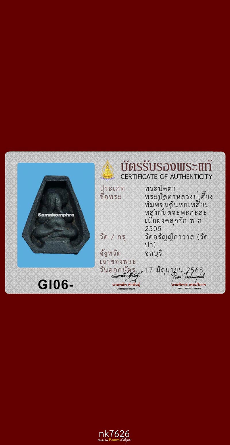 พระปิดตาหลวงปู่เฮี้ยง วัดป่า พิมพ์ซุ้มตัน หกเหลี่อมหลังยันต์จะพะกะสะ เนื้อผงคลุกรัก 2505 สวยแชมป์