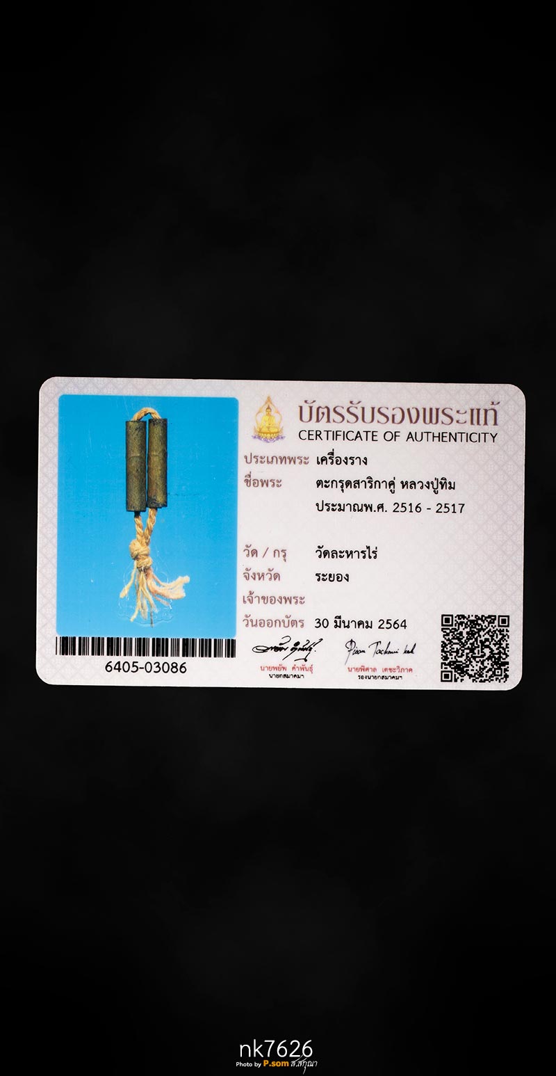 ตะกรุดสาริกาคู่ของหลวงปู่ทิม วัดละหารไร่ 2516-2517 มาพร้อมบัตรสมาคม1ใบ