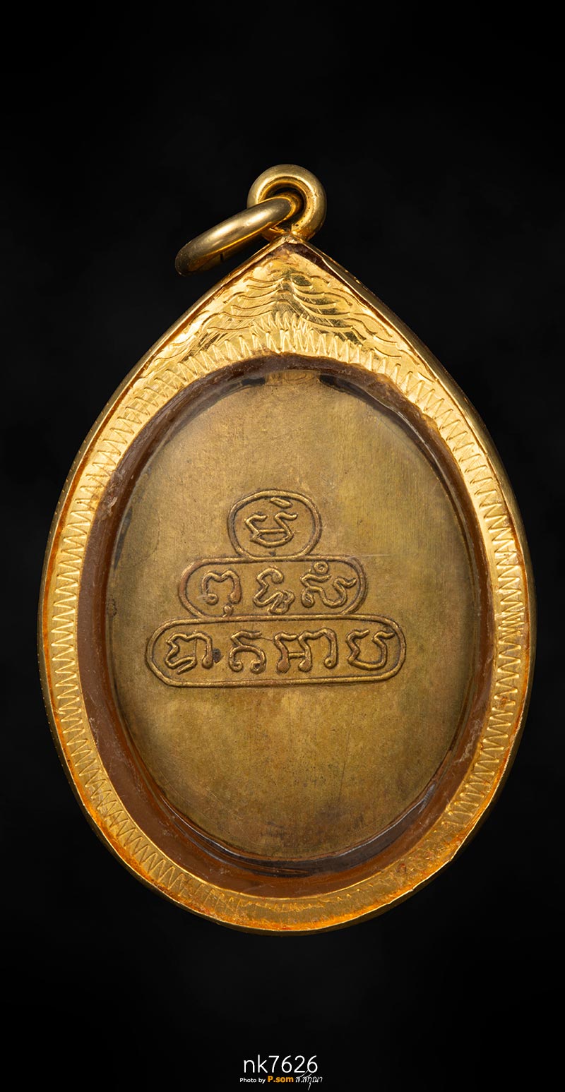 ยันต์น้ำเต้า ประคำเม็ด เนื้อทองแดงกะไหล่ทอง ปี 2492 พร้อมเลี่ยมทอง