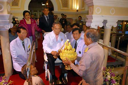 เมื่อเวลา 18.55 น. วันที่ 2 พฤศจิกายน 2552 พระบาทสมเด็จพระเจ้าอยู่หัว เสด็จพระราชดำเนิน ลงจากที่ประทับชั้น 16 อาคารเฉลิมพระเกียรติ โรงพยาบาลศิริราช พร้อมด้วย สมเด็จพระนางเจ้าฯ พระบรมราชินีนาถ และสมเด็จพระบรมโอรสาธิราชฯ สยามมกุฎราชกุมาร สมเด็จพระเทพรัตนราชสุดาฯ สยามบรมราชกุมารี สมเด็จพระเจ้าลูกเธอ เจ้าฟ้าจุฬาภรณวลัยลักษณ์ อัครราชกุมารี พระเจ้าวรวงศ์เธอ พระองค์เจ้าศรีรัศมิ์ พระวรชายาในสมเด็จพระบรมโอรสาธิราชฯ สยามมกุฎราชกุมาร พระเจ้าหลานเธอ พระองค์เจ้าทีปังกรรัศมีโชติ และท่านผู้หญิงทัศนาวลัย ศรสงคราม ไปยังท่าน้ำศิริราช เพื่อทรงลอยพระประทีปเนื่องวันลอยกระทงตามราชประเพณี