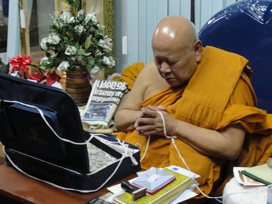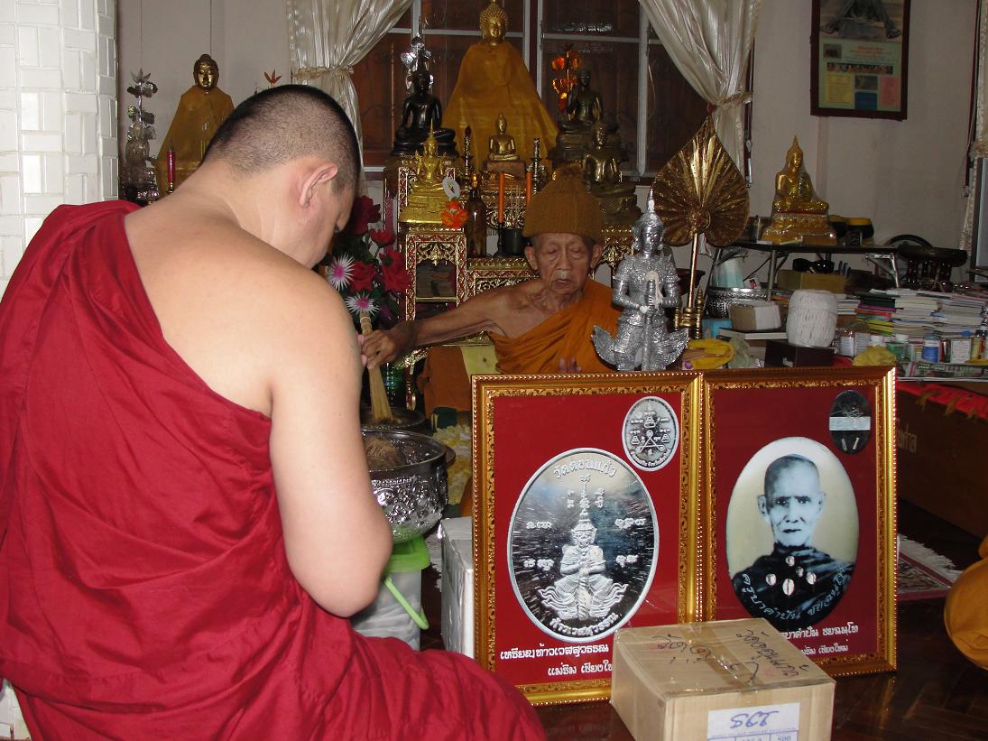 หลวงพ่อพระเถระที่จะอธิฐานจิตนั่งปรกล็อกเก็ตครูบาคำปันและเหรียญท้าวเวสสุวรรณ วัดดอนแก้วในวันที่ 27 มีนาคม 2554 เวลา 13.00 น.