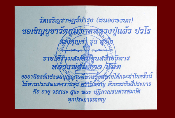 - เพื่อนำรายได้จัดสร้างพระวิหารวัดหนองพงนก จ.นครปฐม