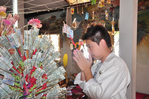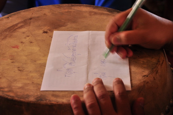 ขออำนาจพระพุทธานุภาพ ธรรมานุภาพ สังฆานุภาพ จงปักปักฮักษา ฑีฆาเตี่ยงมั้น อายุ วรรณะ ธนสารสมบัติ ปัดเคราะห์ตางเหนือบะฮือเข้ามาใกล้ ตางใต้อย่าเข้ามาราวี ฮือมีอายุปี อายุเดือน อายุวัน อายุยาม ผาบแป้ข้าศึกศัตถหลู๋ หมู่มาร บุญก้ำบุญจูพระพุทธศาสนา ฮือได้ห้าปันพระวษา เตี่ยงหมั้นเคราะห์ตางวันออกอย่าได้มาปก เคราะห์วันตกอย่าได้มาก๋าย กึ๊ดสิ่งใดขอฮือสมกำมัก กำผาถนา กู้เยื่อง กู้ผก๋าน ร้อยซาว ร้อยซาว เหมือนกั๋นกู้ผู้ กู้คนเน่อ ขออนุโมทนาสาตุ๊ตวยเน่อติดก๋านแต้ๆ เลยบะได้ไปตวย......... สวาตุ๊ |