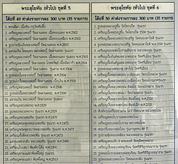| โต๊ะ 49 พระสุโขทัย (ทั่วไป) ชุดที่ 5 รวม 35 รายการ,โต๊ะ 50 พระสุโขทัย (ทั่วไป) ชุดที่ 6 รวม 35 รายการ |