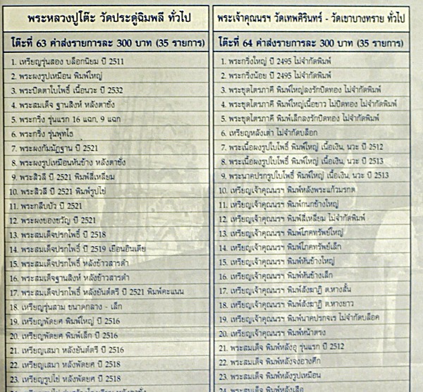 | โต๊ะ 33 พระหลวงพ่อปาน วัดบางนมโค ยอดนิยม รวม 35 รายการ,โต๊ะ 34 ชุดหลวงปู่ทิม วัดละหารไร่ ชุดยอดนิยม รวม 35 รายการ |