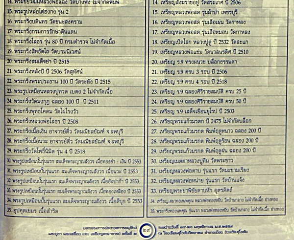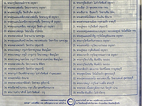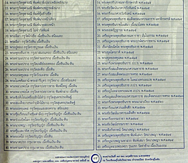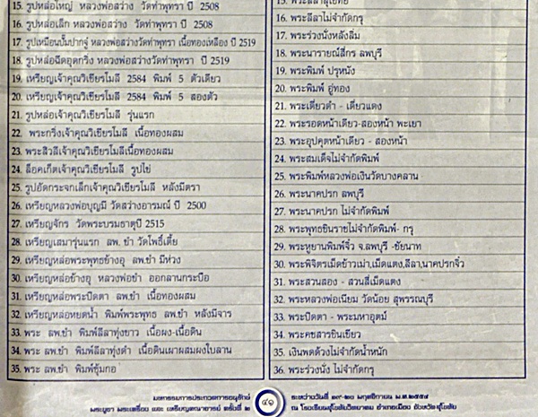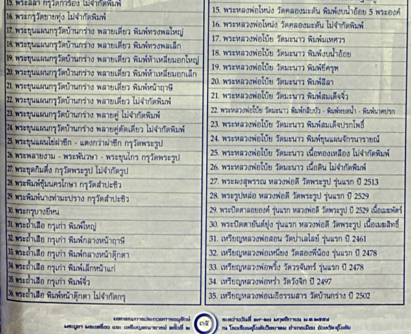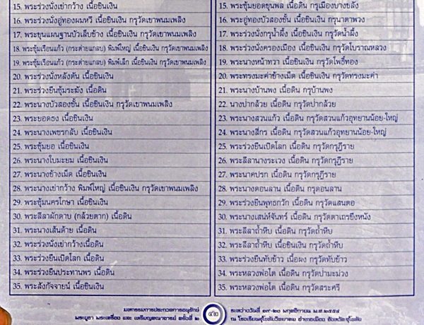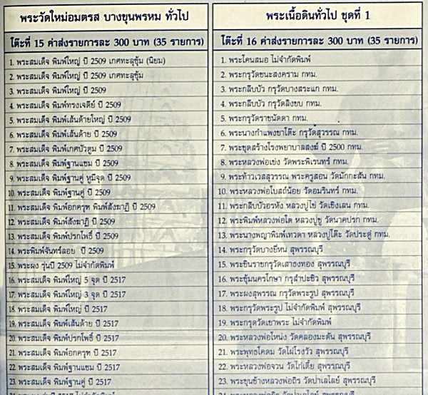 | โต๊ะ 15 พระวัดใหม่อมตรส บางขุนพรหม ทั่ไป รวม 35 รายการ,โต๊ะ 16 พระเนื้อดินทั่วไป ชุดที่ 1 รวม 35 รายการ |