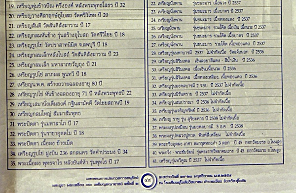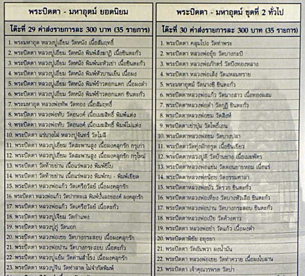 | โต๊ะ 29 พระปิดตา-มหาอุตม์ ยอดนิยม รวม 35 รายการ,โต๊ะ 30 พระปิดตา-มหาอุตม์ ชุดที่ 2 ทั่วไป รวม 35 รายการ |