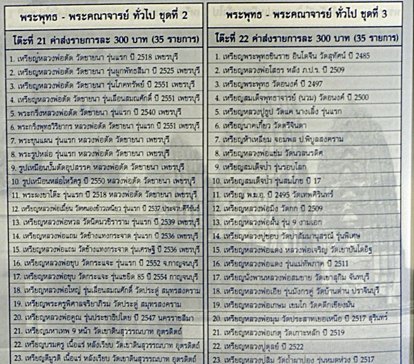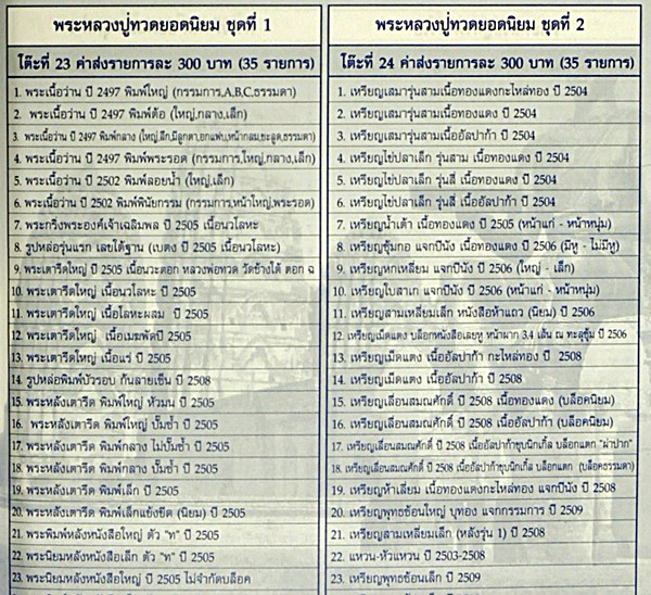| โต๊ะ 23 พระหลวงปู่ทวดยอดนิยม ชุดที่ 1 รวม 35 รายการ,โต๊ะ 24 พระหลวงปู่ทวดยอดนิยม ชุดที่ 2 รวม 35 รายการ |