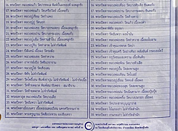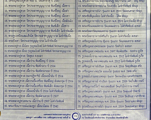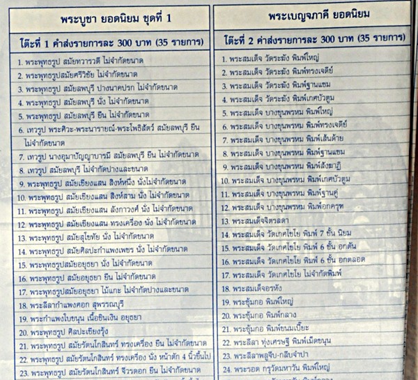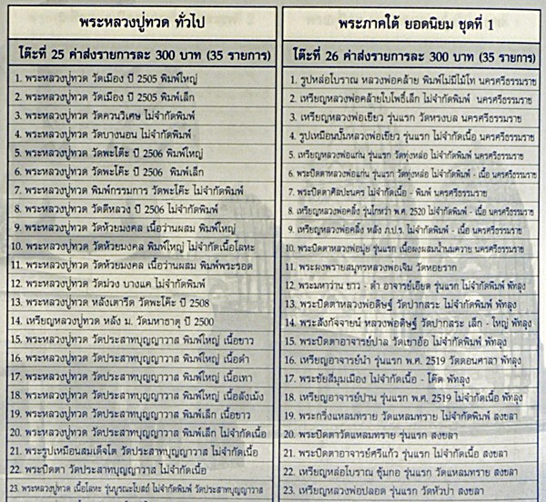 | โต๊ะ 25 พระหลวงปู่ทวด ทั่วไป รวม 35 รายการ,โต๊ะ 26 พระภาคใต้ ยอดนิยม ชุดที่ 1 รวม 35 รายการ |
