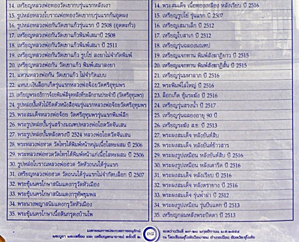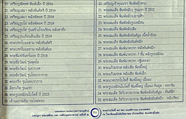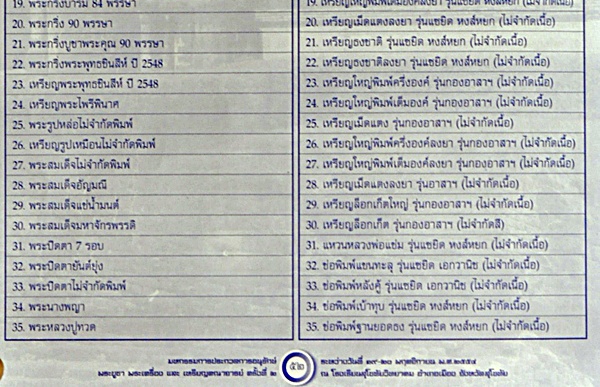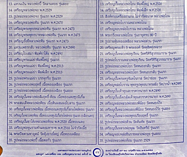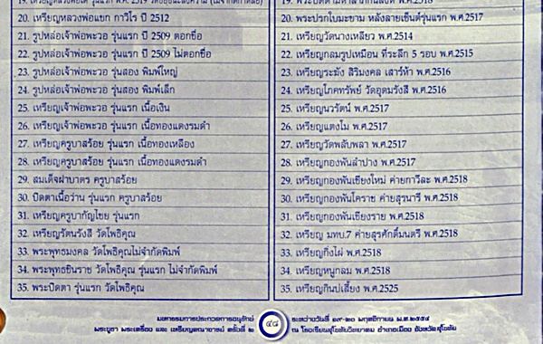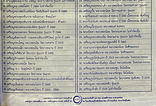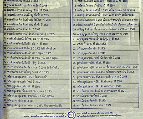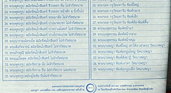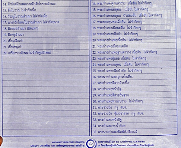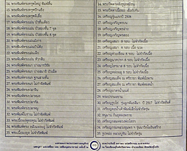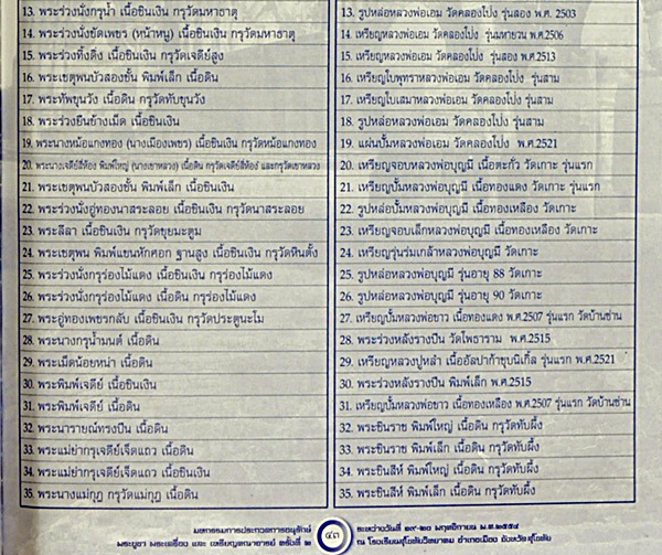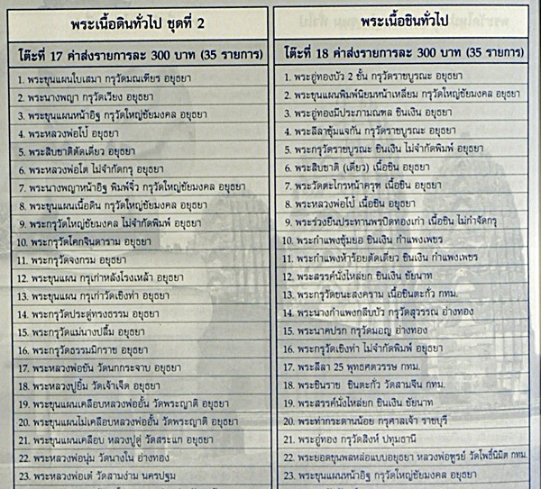 | โต๊ะ 17 พระเนื้อดินทั่วไป ชุดที่ 2 รวม 35 รายการ,โต๊ะ 18 พระเนื้อชินทั่วไป รวม 35 รายการ |