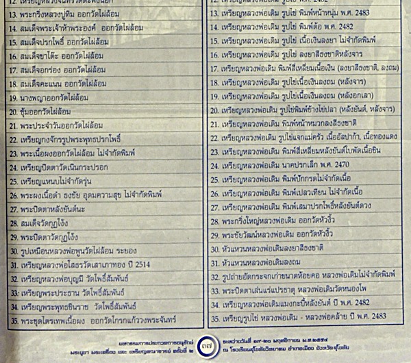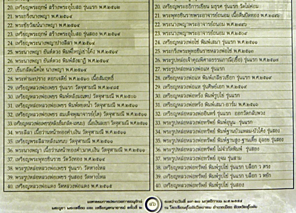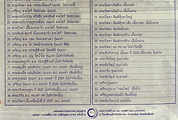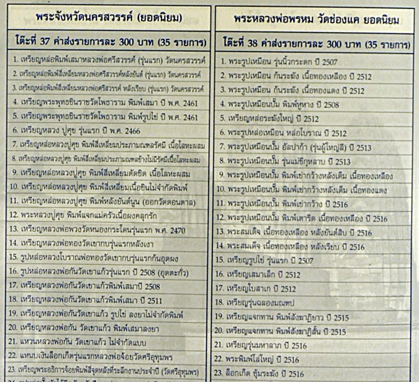 | โต๊ะ 37 พระจังหวัดนครสวรรค์ (ยอดนิยม) รวม 35 รายการ,โต๊ะ 38 พระหลวงพ่อพรหม วัดช่องแค ยอดนิยม รวม 35 รายการ |