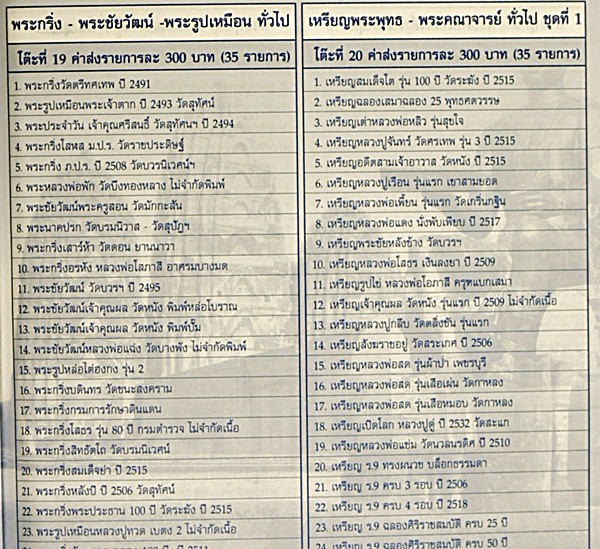 | โต๊ 21 พระพุทธ-พระคณาจารย์ ทั่วไป ชุดที่ 2 รวม 35 รายการ,โต๊ะ 22 พระพุทธ-พระคณาจารย์ ทั่วไป ชุดที่ 3 รวม 35 รายการ |