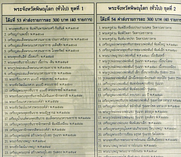 | โต๊ะ 53 พระจังหวัดพิษณุโลก (ทั่วไป) ชุดที่ 1 รวม 40 รายการ,โต๊ะ 54 พระจังหวัดพิษณุโลก (ทั่วไป) ชุดที่ 2 รวม 40 รายการ |