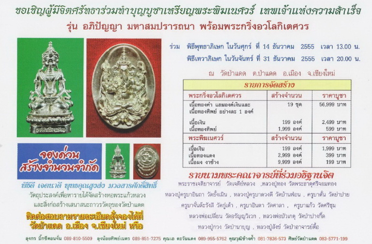 เริ่มสั่งจองวัตถุอันเป็นมหามงคลได้ตั้งแต่บัดนี้เป็นต้นไป