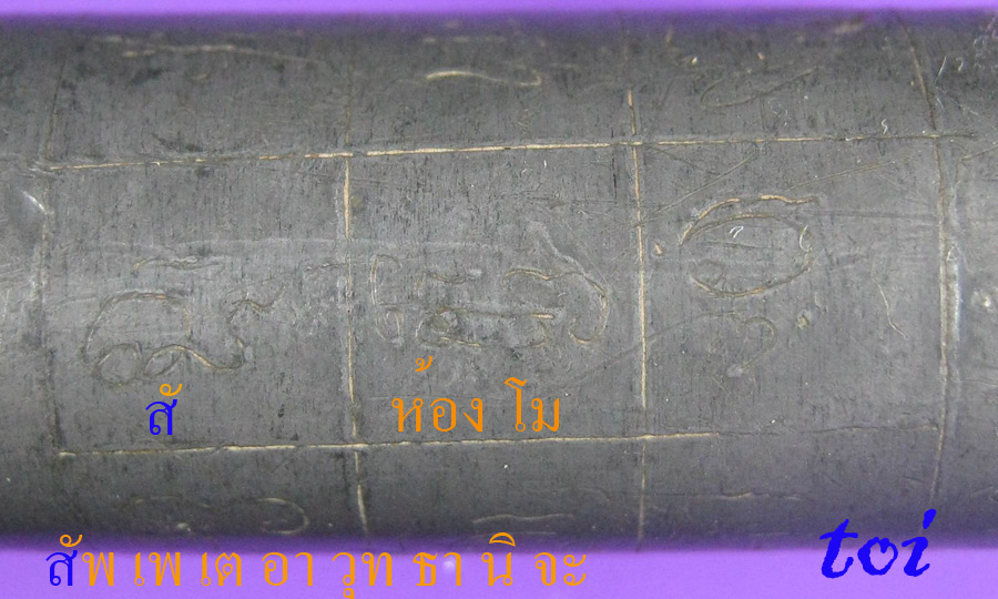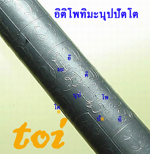 บารมี ๓๐ ทัศ ด้านนี้ว่า อิติโพธิมะนุปปัตโต แต่หลวงพ่อเตียงท่านจะใช้ ทะ ท.ทหาร จารคำว่า โพทิ ครับ