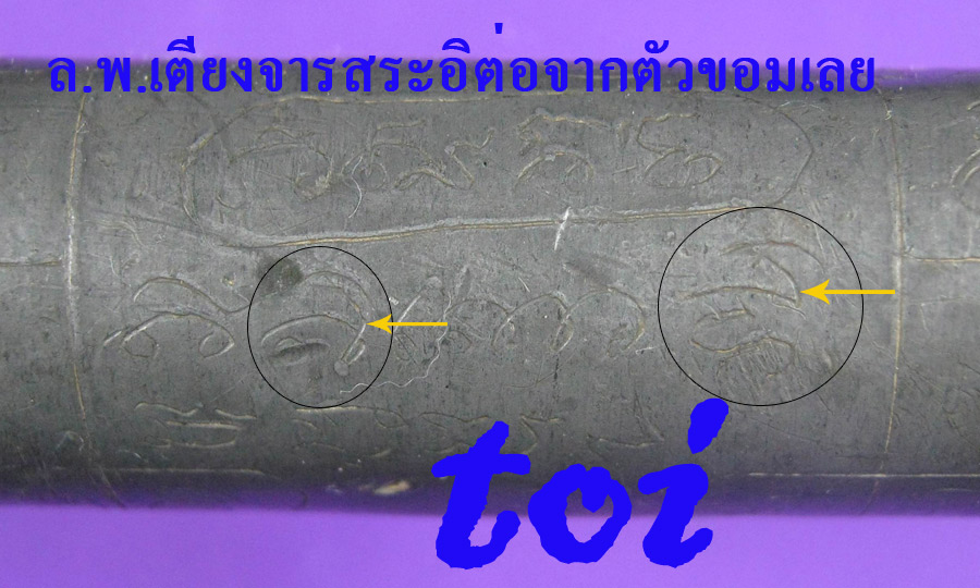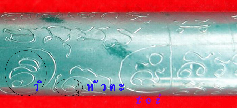 ดูเอกลักษณ์ลายมือการจารคำว่า วิ ของหลวงพ่อเตียงในตะกรุดสองดอกนี้ซิครับ (ที่วงกลมไว้) ดูคล้าย ร.เรือ สระ อิ ริ นะครับ