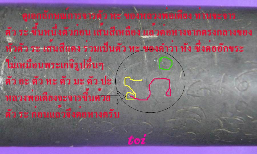 ดูหัวตัว ตะ ของหลวงพ่อเตียงครับ ไม่ว่าจะจารที่ไหนตำแหน่งใด จะเหมือนกันมาก เพราะลายมือท่านเสถียรแล้วครับ