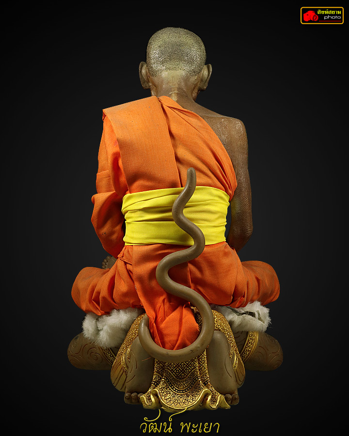 พระบูชารูปเหมือนหลวงพ่อพูล นั่งสมาธิแผ่เมตตาบารมีเหนือเทพหนุมานครองเมือง รุ่นแรก วัดไผ่ล้อม จ.นครปฐม 2 พ.ศ.2547 เนื้อขี้ผึ้งไฟเบอร์กลาสห่มจีวรจริง ขนาดบูชา 9 นิ้ว
