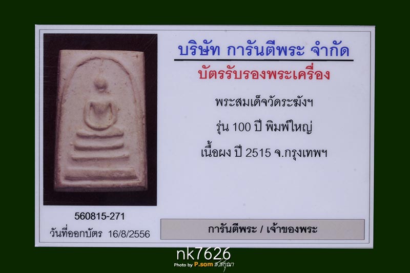 พระสมเด็จวัดระฆัง100ปี พิมพ์ใหญ่ บล็อคไข่ปลาเลือน 2515 มาพร ้อมบัตรเว็บG สวยฯครับผม : พระล้านนา.คอม เว็บ พระเครื่อง พระบูชา อันดับหนึ่ง ของภาคเหนือ