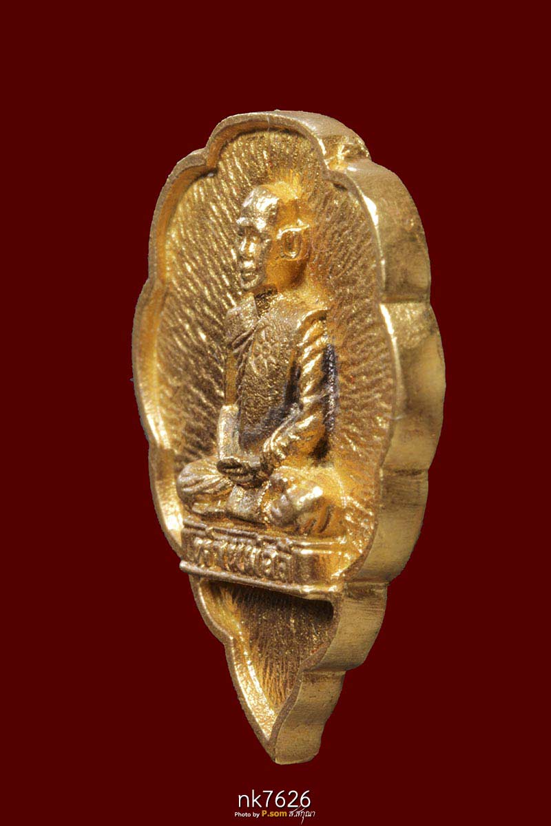 หลวงพ่อลี เนื้อทองคำ รูปเหมือนใบโพธิ์ ปี.2536 วัดป่าคลองกุ้ง จ.จันทบุรี พิมพ์หลังพระเจ้าตากสิน