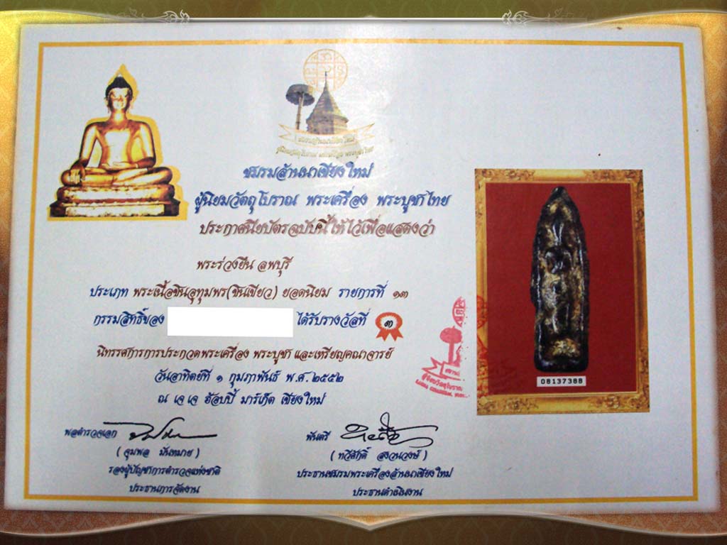 พระร่วงเนื้อชินเขียว กรุลพบุรี มาพร้อมใบประกาศที่ ๓ แท้สบาย ใจครับ