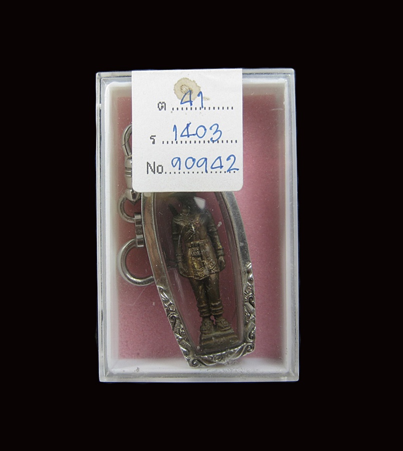 รูปหล่อสมเด็จพระเจ้าตากสิน ค่ายตากสินจันทบุรี สร้างปี 2531เนื้อนวโลหะแก่ทองเลี่ยมเงินงานมือพระสวยมาก