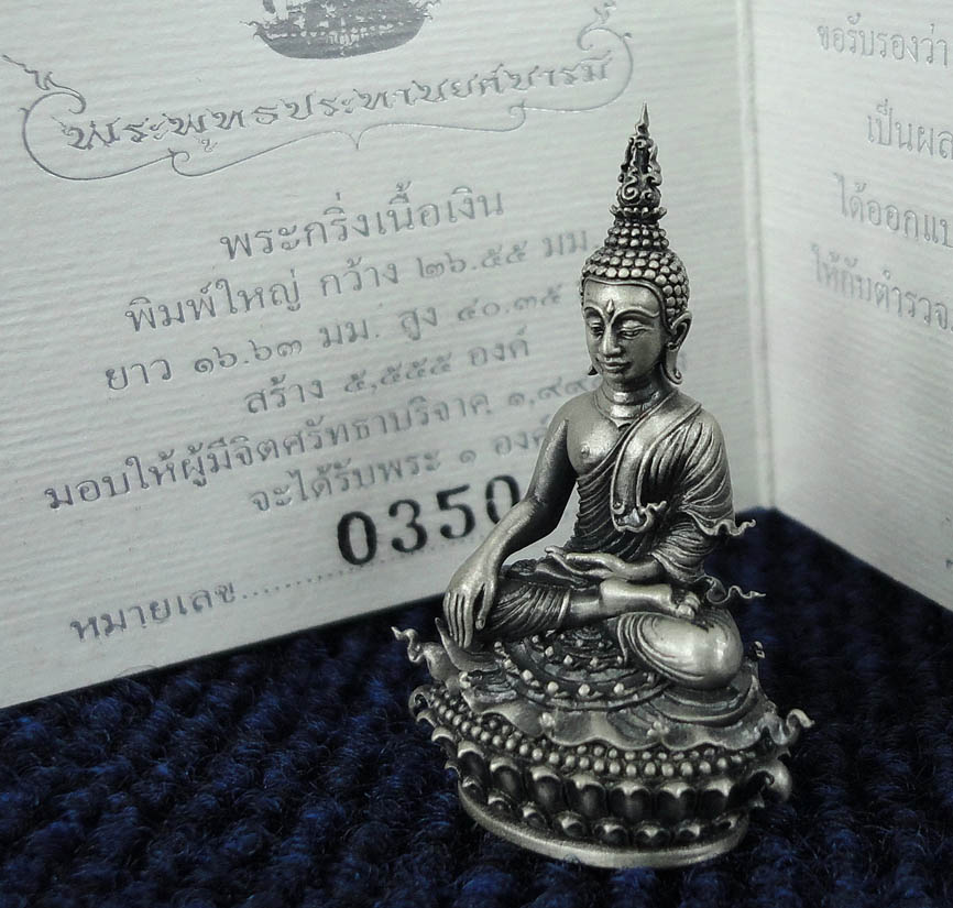 พระพุทธประทานยศบารมีฯเนื้อเงินพิมพ์ใหญ่หมายเลข 350 สวยๆเดิมๆมีครบเซ็ทครับ..สำหรับท่านข้าราชการตำรวจที่เกษียรราชการ..ได้เดินทางไปรับมอบเป็นของที่ระลึกจากท่านฯ...ที่ ตร.ภาค 5 เท่านั้น ครับ( มีสติ๊กเกอร์ติดมาด้วย )..สวยสมบูรณ์..100% กริ่งดังกังวาล ครับผม...