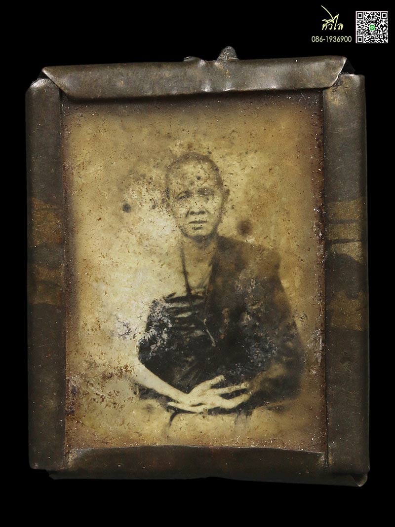 รูปถ่ายซีเปียอัดกระจกหุ้มฝาบาตรครูบาเจ้าศรีวิชัย ขนาดแขวนคอ