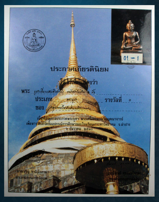 พระสิงหืหนึ่งเชียงแสน 1 นิ้วครึ่ง รางวัลที่1