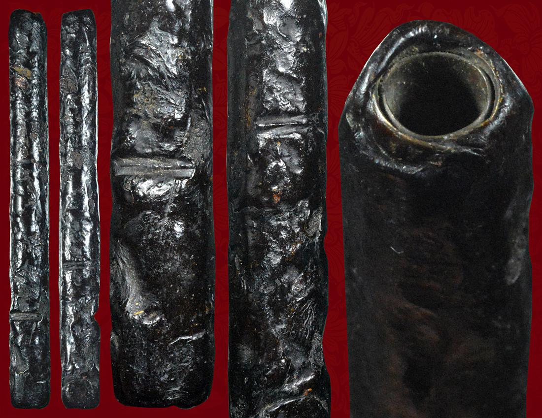 ตะกรุดโทนพอกครั่ง ขนาดยาว 3.6 นิ้ว ตะกรุดเนื้อทองแดงหนา พิเศษตรงตัวครั่งตะกรุด ปั้มเป็นรูปพระพุทธ แปลมากๆสวยงามครับ เด่นทางแคล้วคลาดเมตตา เก่าสวย ไม่ทราบพระเกจิอาจารย์ครับ