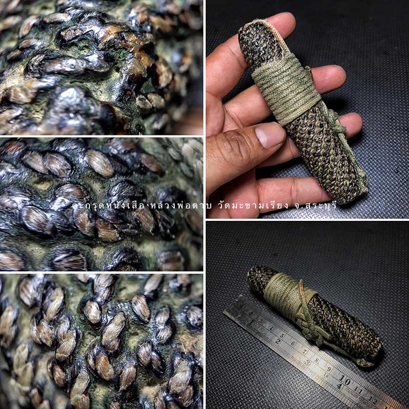 ตะกรุดหลวงพ่อตาบ ฟอร์มมาตรฐาน { หนังหน้าผากเสือโคร่ง} ขนาดความยาว 4 นิ้ว หลงรักถักเชือกเดิมๆ ชิ้นนี้เก่าจัดดูง่ายสบายตา เป็นตะกรุดที่มีเอกลักษณ์ที่ชัดเจน วัตถุมงคลของท่านล้วนได้รับความนิยมและมีประสบการณ์สูงมาก ลูกศิษย์ลูกค้าชาวต่างชาติต่างแสวงหาเพื่อบูชาติดตัว เป็นเรื่องเล่าขานสืบต่อหรือประสบการณ์กับตนเองในเรื่องของพุทธคุณไม่เป็นรองวัตถุมงคลใดๆ พุทธคุณเป็นที่ประจักษ์ มีเอกลักษณ์ชัดเจน เป็นมาตรฐาน และเป็นที่นิยมอย่างแพร่หลายในวงการเครื่องรางขณะนี้ครับ เเอดไอดี LINE ID ไลน์ @jack007 อย่าลืมใส@ Facebook แจ็คเชียงดาว WeChat ID 微信 jackchianbgdao โทรศัพท์ 081-0312139