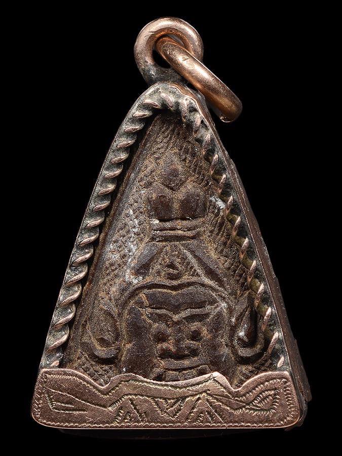 ราหูอาจารย์ปิ่น วัดศีรษะทอง นครปฐม เลี่ยมนาคเก่าโบราณด้านหลังมีสารอักขระ ท่านเป็นลูกศิษย์คนสำคัญที่สืบทอดวิชาอาคมต่างๆมาจากหลวงพ่อน้อย วัดศีรษะทอง นอกจากนี้ในสมัยที่หลวงพ่อน้อยยังมีชิวิตอยู่นั้นพระอาจารย์ปิ่นท่านยังเป็นผู้ช่วยลงจารอักขระที่กะลาอีกด้วย ราหูศิลป์หน้าเทพ ทรงสามเหลี่ยม เป็นรูปแบบรูปทรงที่หายากพบเจอพระเเท้ที่เก่าถึงยุคได้น้อยมาก องค์ที่ลงเป็นตัวอย่างเป็นพระที่มีศิลปะงดงามช่างฝีมือในยุคเก่าแกะได้สวยมาก ผิวเดิมผิวหิ้ง ยากที่จะหาชิ้นเล็กขนาดประมาณเหรียญ 1 บาท เเอดไอดี LINE ID ไลน์ @jack007 อย่าลืมใส@ Facebook แจ็คเชียงดาว WeChat ID 微信 jackchianbgdao โทรศัพท์ 081-0312139