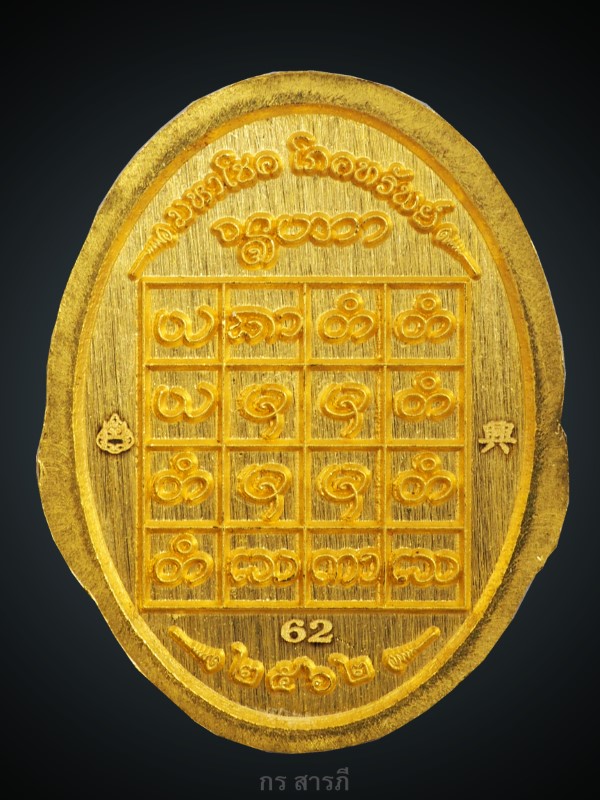 องค์นี้เหรียญเนื้อทองคำมหาฤกษ์เล็ก ( เม็ดแตง ) จัดสร้าง 108 เหรียญ ครูบากฤษดา อธิฐานจิตปลุกเสกเดี่ยว หมายเลข 62 ทองคำบริสุทธิ์ 96.5 % พร้อมใบรับประกันทอง