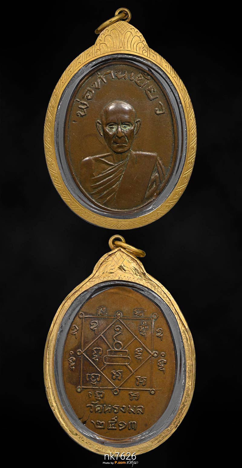 เหรียญพ่อท่านเขียว รุ่นแรก วัดหรงมล จ.นครศรีธรรมราช ปี 2513 (เนื้อทองแดงกะไหล่ทอง)