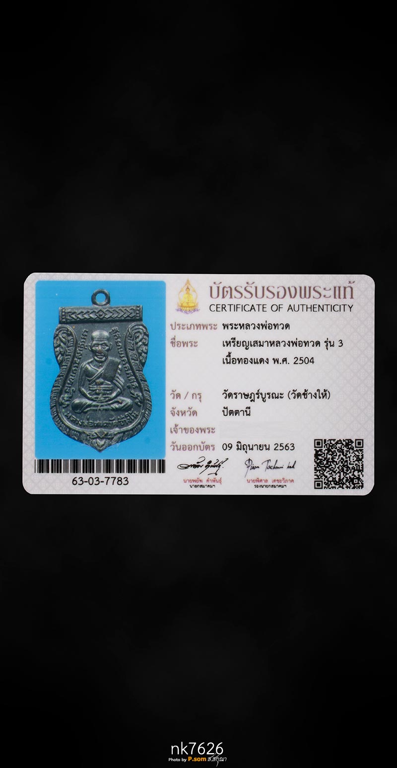 หลวงปู่ทวด วัดช้างให้ รุ่น3 ปี2504 เนื้อทองแดงรมดํา มาพร้อมบัตรสมาคม : พระล้านนา.คอม เว็บ พระเครื่อง พระบูชา อันดับหนึ่ง ของภาคเหนือ