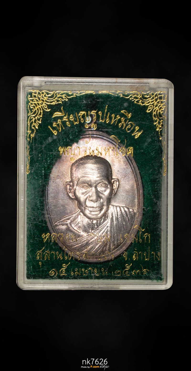 เหรียญพญาวันมหาโชค หลวงพ่อเกษม เขมโก จ.ลำปาง 2536 เนื้อเงิน หมายเลข1904 มาพร้อมกล่องเดิม