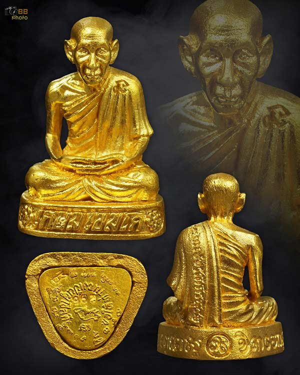 รูปหล่อ หลวงพ่อเกษม เขมโก ปี 2533 รุ่นพิเศษฉลองมณฑป ชุดเนื้อทองคํา/เนื้อเงิน/เนื้อนวะ