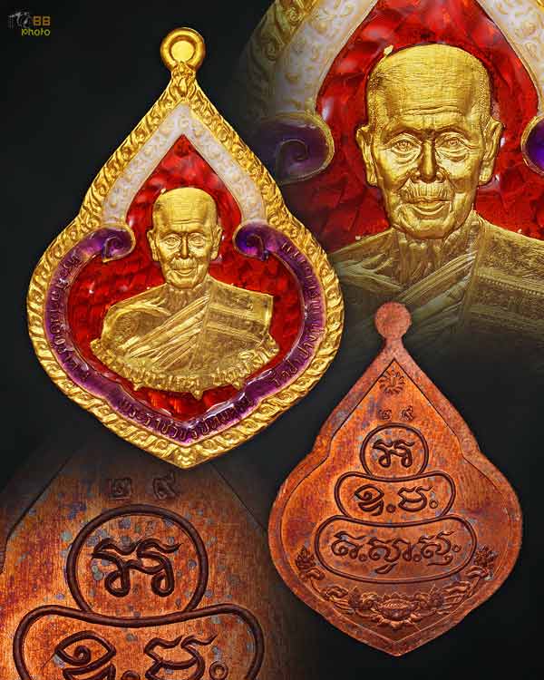เหรียญหยดนํ้า หลวงปู่บัวเกตุ ปทุมสิโร ว้ดป่าปางกึ๊ดกิตติธรรม ที่ระลึกฉลองพระธาตุเจดีย์ศรีวัชรปัทมคุณ องค์นี้เนื้อชนวนลงยา3สีหน้ากากทองคํา /ขอบทองคํา หมายเลข29