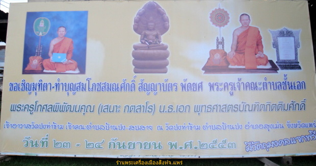 เพื่อแจกแก่ผู้ร่วมทำบุญในงานนี้ อาทิเช่นพระปรกมะขาม,เหรียญเสมา,ผ้ายันต์,ตะกรุดและพระเจ้าทันใจฯลฯ |