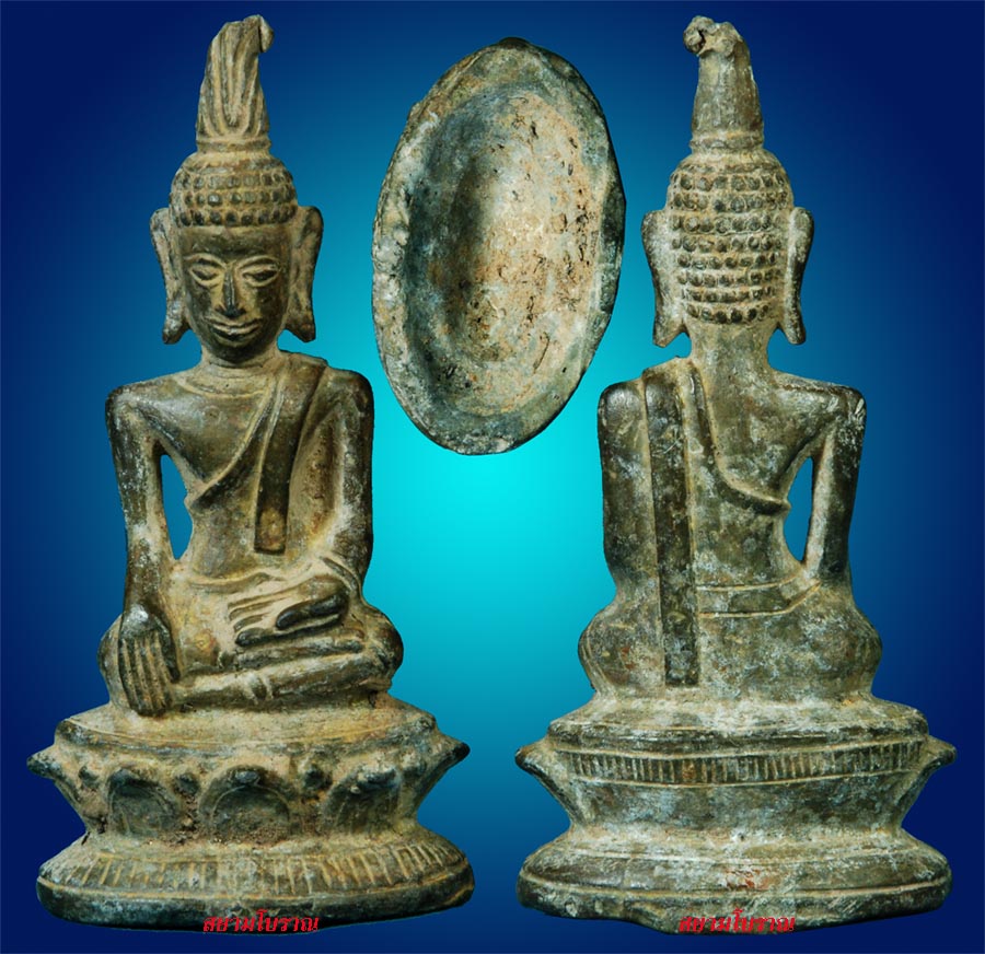 พระบูชา ศิลปะล้านช้าง-ล้านนา หน้าตัก 3 นิ้ว เนื้อสำริด สนิมเขียว