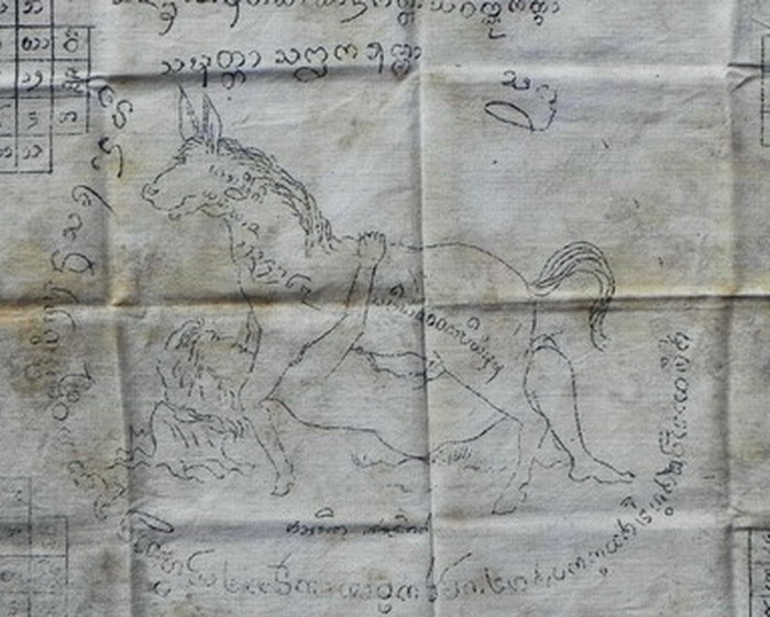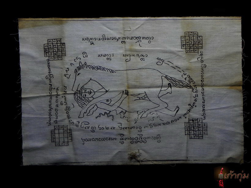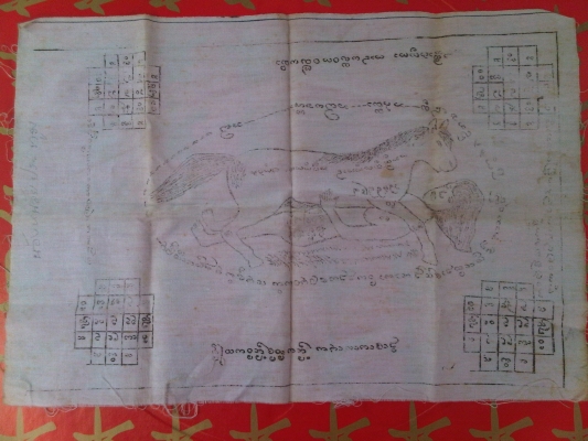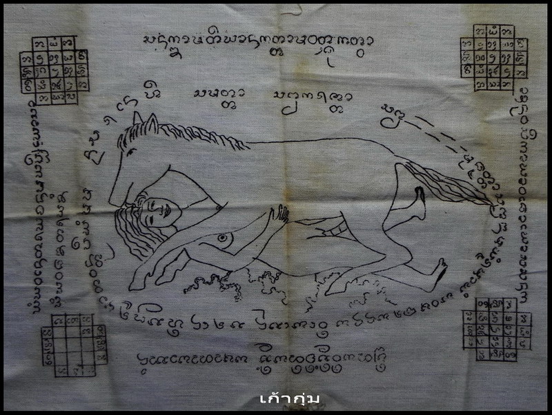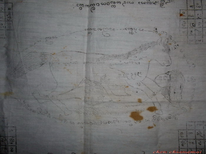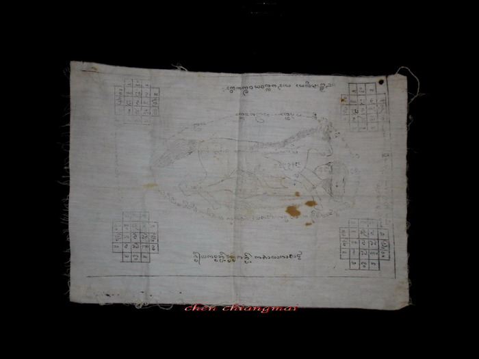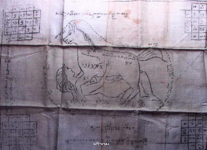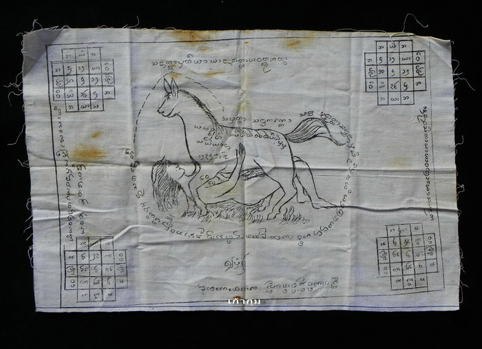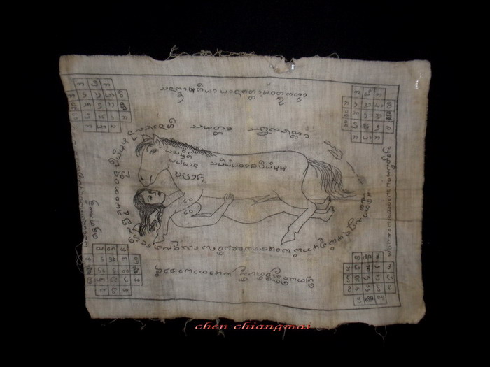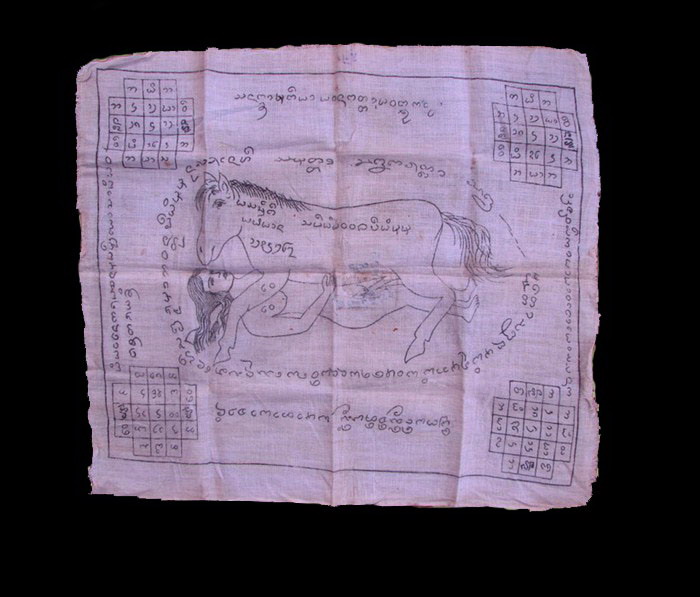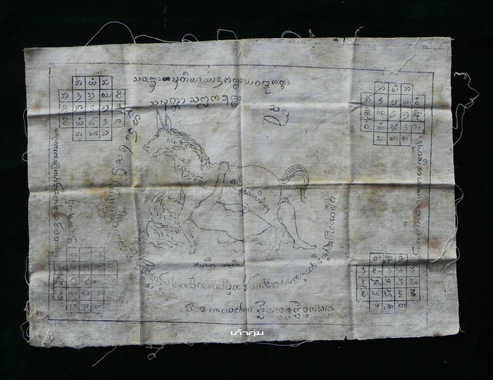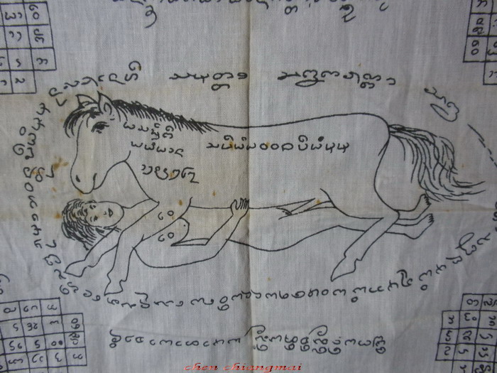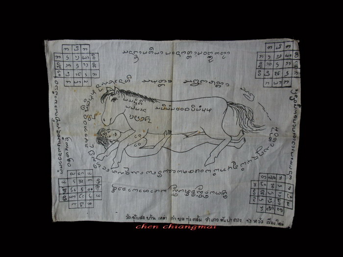 | ผ้ายันต์ม้าเสพนาง(ยุคต้น) ครูบาต๋า ผ้าผืนนี้ชื่อ " พี่เจียมจั๋น " หายาก ครับ...(เอี้อเฟื้อภาพ จาก คุณต้น สันป่าตอง ) |