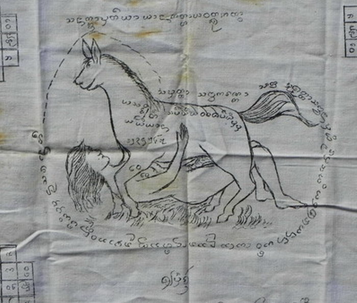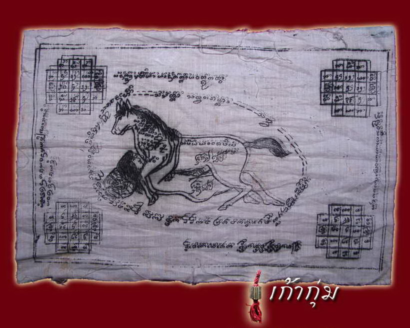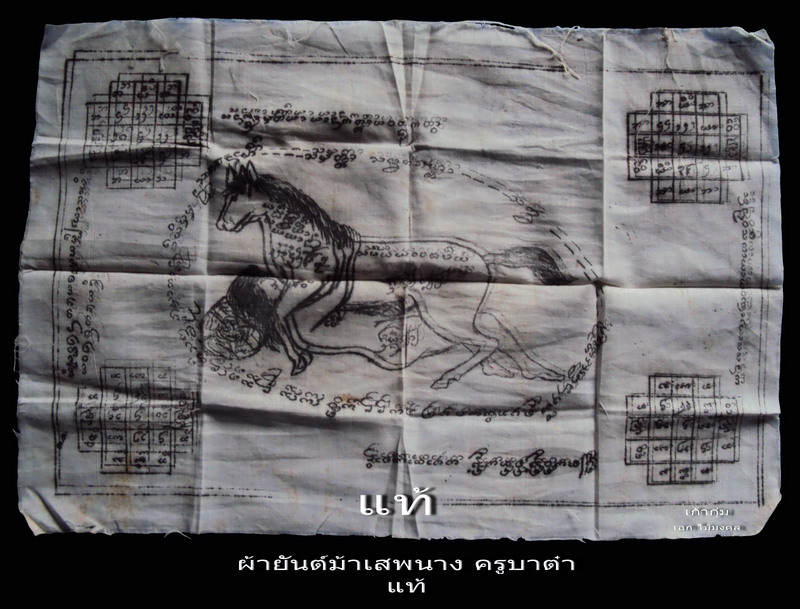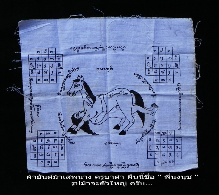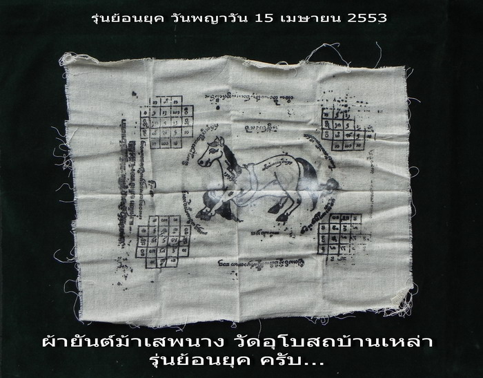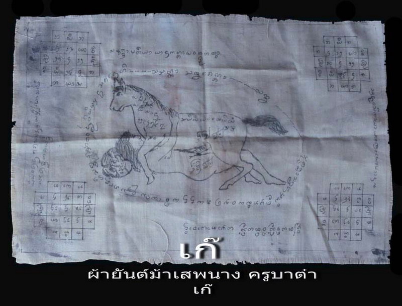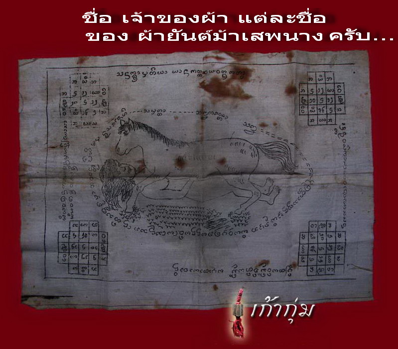 | มาชม... ผ้ายันต์ม้าเสพนาง ครูบาต๋า วัดอุโบสถบ้านเหล่า ครับ... ( ตอนนี้ ราคาแพงมาก ครับ... ผืนนี้ ชื่อ พี่เจี๊ยบ ขายไปแล้ว มากกว่า 30,000 up.บาท ครับ. ) |