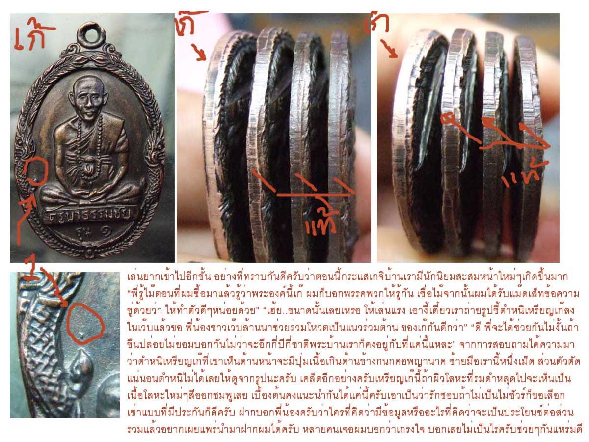 ขออนุญาติเพิ่มเติมอีกนิดนะครับ บล็อกเก๊ของเหรียญครูบาธรรมชัยตอนนี้มี 2 บล็อกแล้วครับ บล็อกแรกจะออกมาได้ใกล้เคียงกว่า ส่วนบล็อกที่สองนี้ยังถือว่าห่างครับ สังเกตุง่ายๆเลยคือ เหรียญจะดูตื้นไม่เป็นธรรมชาติแตกต่างกับเหรียญจริงที่ลึกและมีมิติ ส่วนของผิวเหรียญก็ยังไม่ตึงเนื้อหาของโลหะยังไม่ถึงยุคครับ ส่วนเหรียญบล็อกแรกนั้น ผมขออนุญาติหยิบยืมกระทู้เก่าของพี่แหร่มจริงมาให้ดูอีกครั้งนะครับ ส่วนตัวผมก็มีเท่านี้ครับ ขอบคุณครับ |