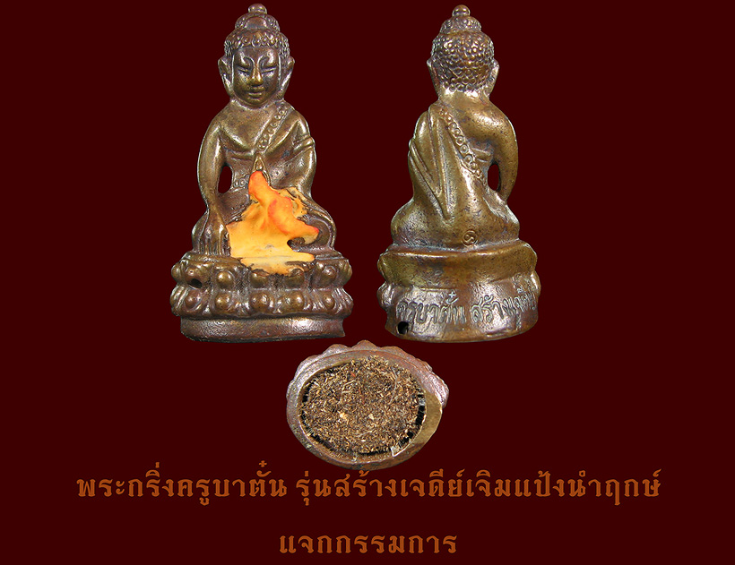 ก่อนที่จะทำการหล่อพระกริ่งชุดนี้ คณะผู้จัดสร้างได้นำชนวนต่างๆ และ มวลสารศักดิ์สิทธิ์ไปให้หลวงปู่จรัญ สุเขสิโน วัดน้ำเคือง ( ศิษย์เอกหลวงพ่อเดิม วัดหนองโพธิ์ ) อธิฐานจิตเป็นปฐมฤกษ์ก่อนหล่อพระกริ่งชุดนี้