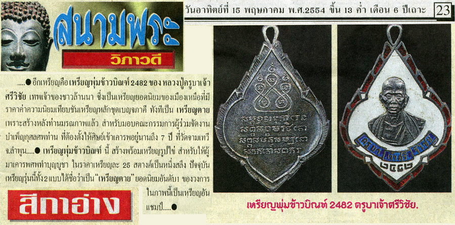เหรียญกรรมการเนื้อเงินลงยา 2482 ครูบาเจ้าศรีวิไชย เหรียญอันดับหนึ่งของล้านนา