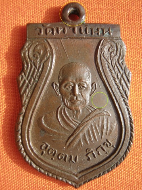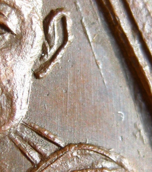 พื้นเหรียญ บนหัวไล่ซ้ายของหลวงพ่อจะมีเส้นแตกเป็นแนวยาวขึ้นไป