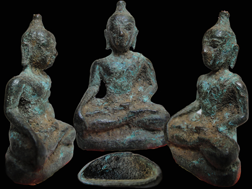 พระเชียงแสน สิงห์หนึ่ง หน้าตัก 1 นิ้ว ฐานเขียง ยุคต้น เนื้อสัมฤทธิ์