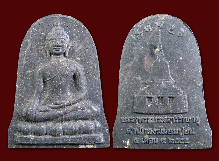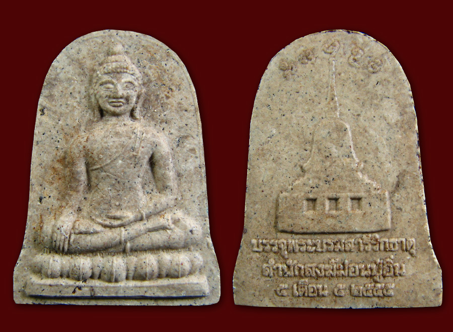 เนื้อสีขาวผงพุทธคุณสร้างจำนวน 9,001 องค์ นำมาบรรจุเจดีย์ 2,555 องค์ ที่เหลือแจกให้แก่คณะศรัทธาทุกท่านจนกว่าจะหมด