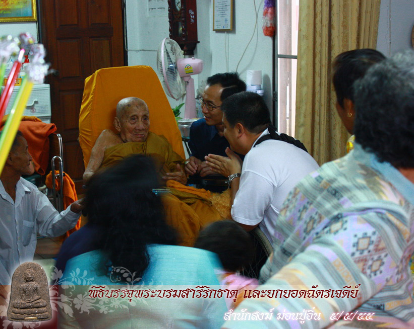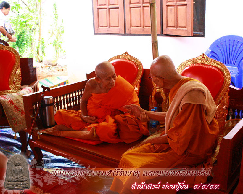 พิธีบรรจุพระบรมสารีลิกธาตุ และ ยกยอดฉัตรพระธาตุเจดีย์สำนักสงฆ์ม่อนปู่อิ่น ในวันเสาร์ที่ 5 เดิอนพฤษภาคม 2555 ที่ผ่านมาหลวงปู่ครูบาเจ้าตั๋น ปญฺโญเป็นประธานในพิธี และ พระคณาจารย์อาวุโสล้านนา 9 รูป ร่วมสวดเจริญพระพุทธมนต์ ดังนี้